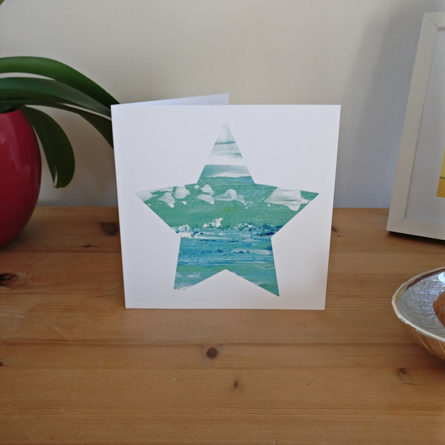 'It's a Washout' is one of a series of cards reproduced from 5 of my original abstract seascape paintings of St Ives in Cornwall, England. The image has been cropped into a star shape and printed on high-white matte FSC paper for this greetings card format.